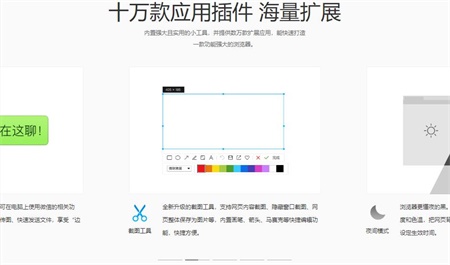内置微信、翻译君、截图工具、广告过滤等等工具及扩展插件,为用户打造一款功能强大的浏览器。