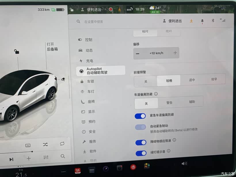 这边要说那种是我的这台新Y在被动安全方面确实做得非常得好,很多次他都帮我避免了事故的发生,遇到前车突然的急刹车车机会主动进行警报,并在必要时紧急制动,这样的情况已经触发很多次了,还有一些时候后车的快速逼近,如果你的车辆没有在车道内局中,特斯拉方向盘会立马给你拉回到车道里面,保证安全行驶,有一次车辆转弯时碰到那边过来的电动车突然出现,车辆主动进行刹车也避免了事故,总之我觉得这台y在被动安全方面很不错,这是让我最喜欢的一点。