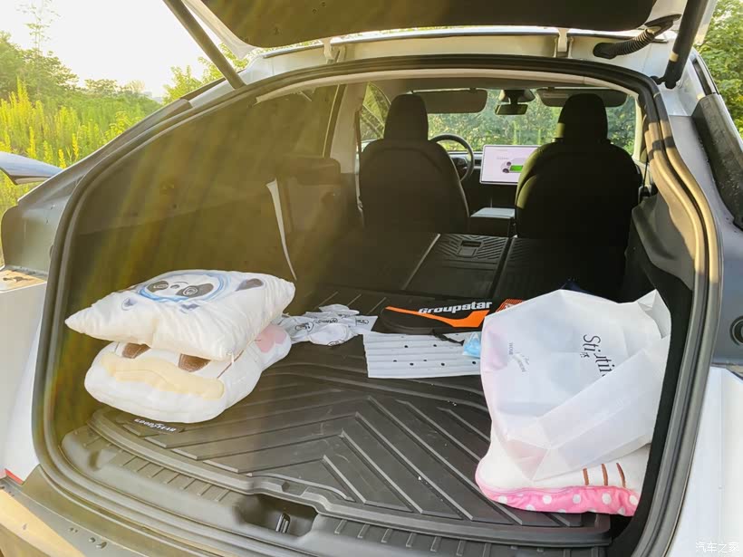 特斯拉Y还有一个优点,那就是一个移动的大酒店了,他的后排可以整体的放倒,而且这台新Y还能提供电动放倒功能,放倒后的第二排整个后排就成了一个非常长的大床房了,加上开了露营模式之后,一整天睡在里面都是挺不错的,如果喜欢出去自驾游的车友完全可以用这台车来露营,都是非常不错的体验。