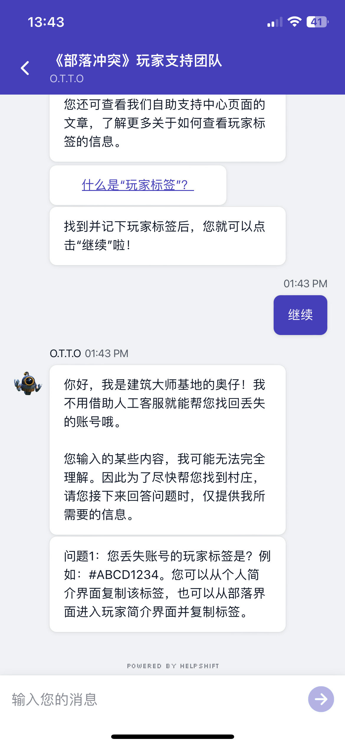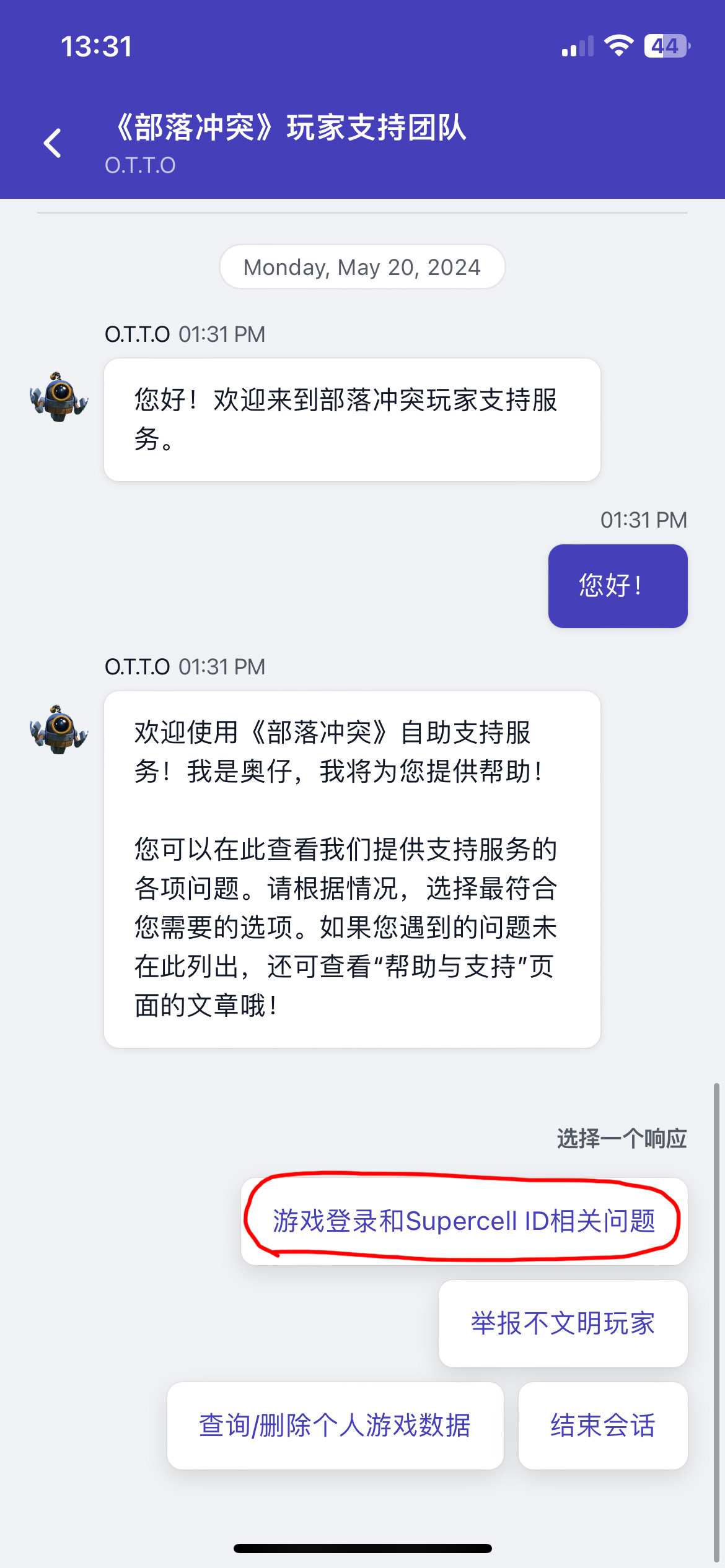 到了这一步,终于轮到人工客服出场了,现在找人工是真费劲啊,Supercell 现在算是学到腾讯的精髓了。