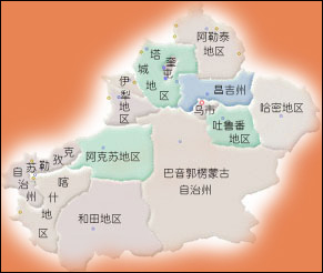 新疆维吾尔自治区(以下简称新疆),位于中国西北部,东经73°32`--96°21`,北纬34°22`--49°33`;东西最长达2000公里,跨 度约22°50`;南北最宽约1600公里跨度近14°30`;土地面积为166万多平方公里,约占全国总面积的1/6。其东部与我国的甘肃省、青海省相 连,南部与西藏自治区毗邻。从东北至西南分别与蒙古、俄罗斯、哈萨克斯坦、吉尔吉斯斯坦、塔吉克斯坦接壤,西南部和阿富汗、巴基斯坦、印度相邻,同邻国共 有5400公里左右的边界线,约占中国与邻国边境线总长度的1/4。新疆是中国面积最大、国境线最长、交界邻国最多的省区。 新疆,古称西域,自古以来,就是中国不可分割的一部分。新疆被称做“亚欧大陆中心”。新疆在历史上成为沟通东西方的闻名于世的“丝绸之路”的要冲,现在又 成为从中国东海岸的连云港连结西欧荷兰鹿特丹铁路----“亚欧大陆桥”的必经之地,构成中国同中亚、西亚、欧洲相互往来的陆上捷径。新疆在中国960万 平方公里的河山中占有十分重要的地位。她即是建设有中国特色社会主义的一块宝地,又是中国西北部的屏障,其战略地位十分重要。