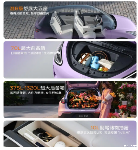中配新增车窗镀铬条,多款黑顶双拼色,极光紫色,后排出风口,前电动座椅,后视镜电折叠,中高配新增256色氛围灯等