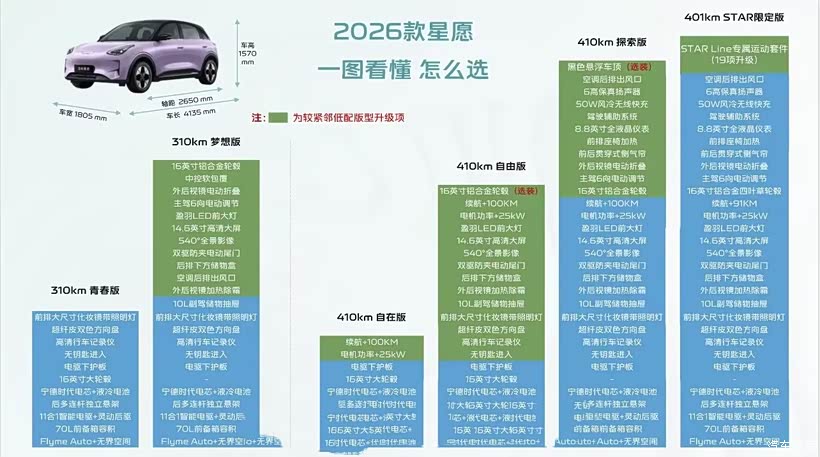 2026款星愿配置主要变化猜测: