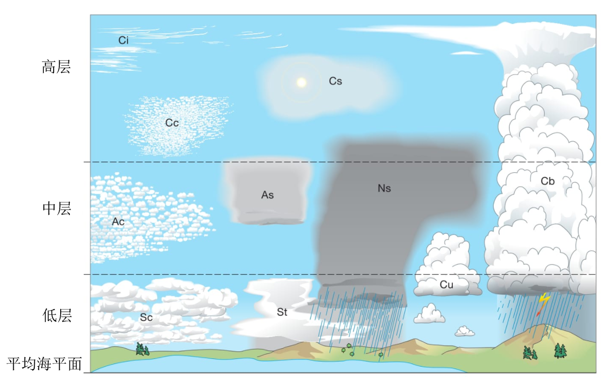 当已知特定云的高度时,层面的概念可能对观测人员识别云有一定的帮助。通过从对应于其高度的层面上通常存在的属中来选择确定云的属。