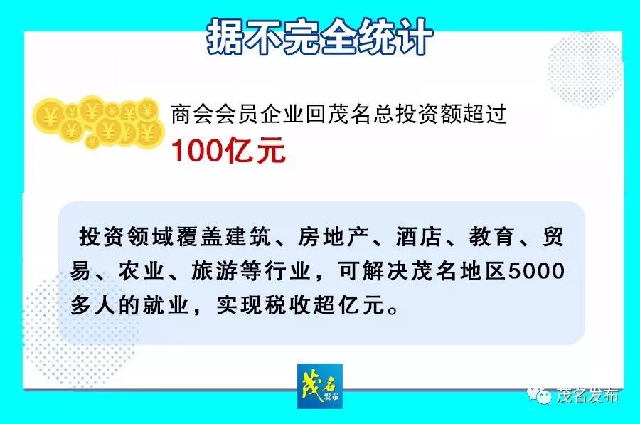 深圳市茂名商会近年来,组织会员积极响应家乡政府“反哺”的号召,至今已有30多位在深茂名籍人士回家乡投资,投资领域涉及房地产、酒店、旅游等行业,投资总额超过300亿元。