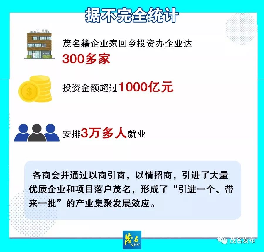 这几年来,各地茂名商会已成为我市招商引资的重要力量,越来越多的茂名籍企业家感受到茂名的磅礴发展之势,积极回归家乡投资创业,成为了我市大发展大建设的领头雁。