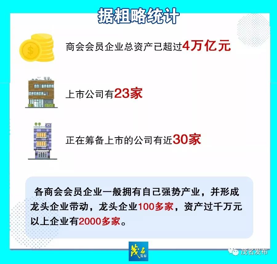 至目前为止,茂名共成立18个异地商会和6个本地异地商会,7个本地直属商(协)会。异地商会对联络乡情、抱团发展、维护权益和促进我市“回归工程”“反哺工程”和公益事业发挥了积极的作用,已经成为推动茂名经济社会发展的新生力量。