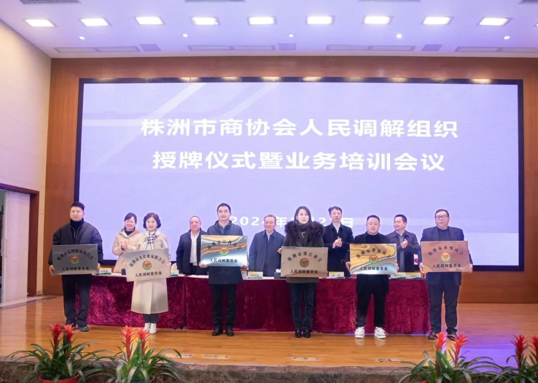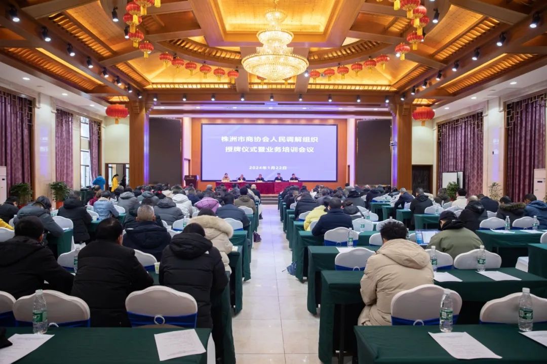 市县两级党委政法委、人民法院、司法行政机关和工商联相关负责人,全市20家已成立人民调解组织的商协会和民营企业的人民调解员以及株洲24位异地商会秘书长共计160余人参加了本次授牌仪式和培训会。