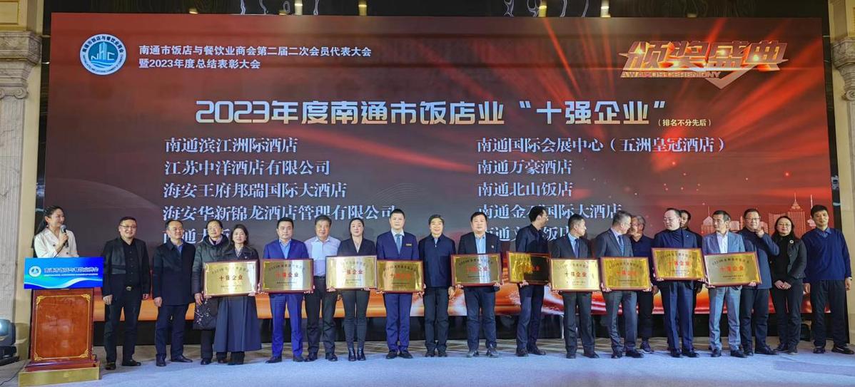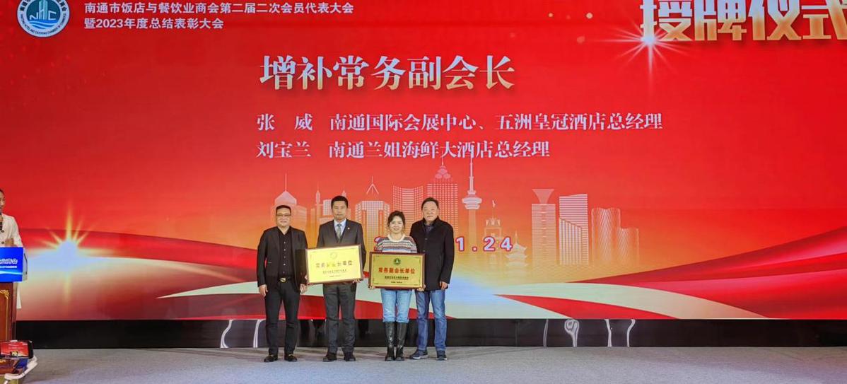 活动现场,宣读了“2023年度南通市饭店餐饮业先进集体、先进个人”名单并颁奖,商会“战略合作企业”正式授牌。