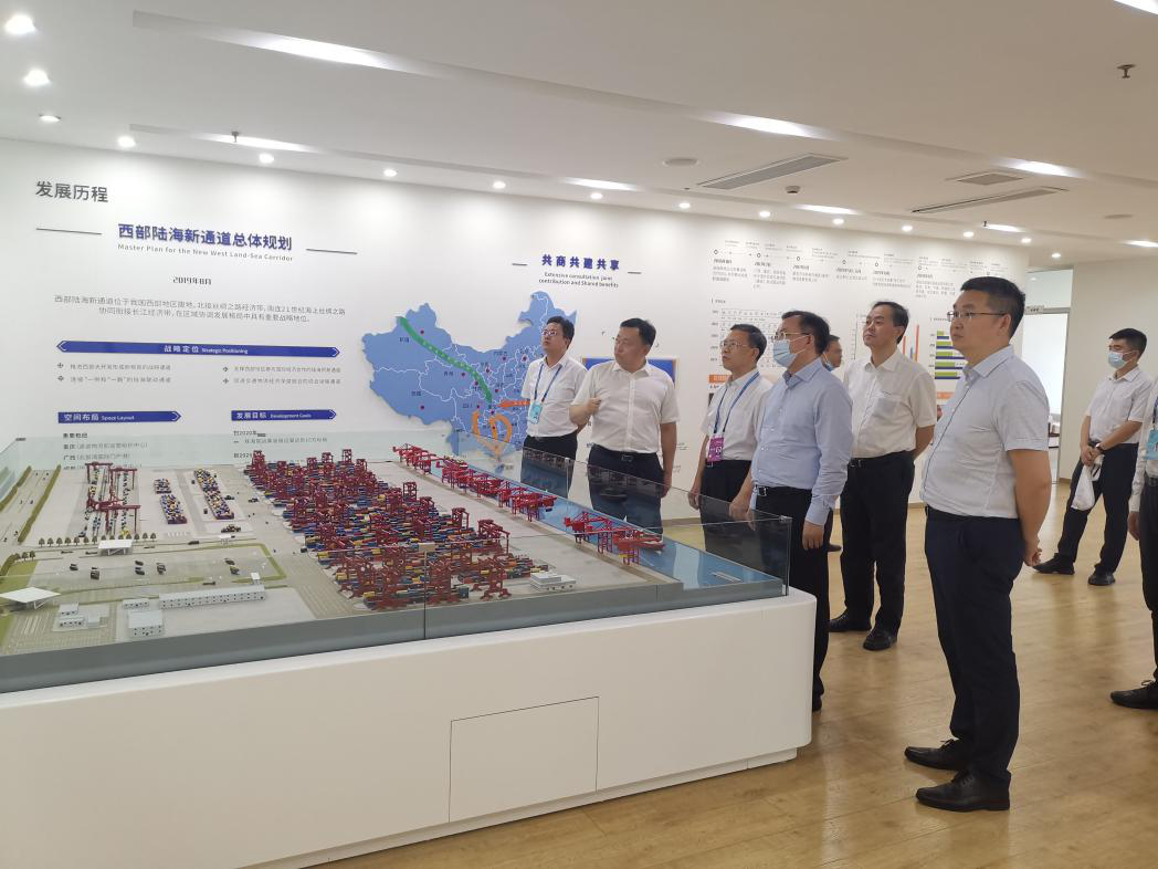 在渝期间,沈裕谋一行还专程赴重庆内陆国际枢纽展示中心与重庆国际物流枢纽园区考察调研,深入了解西部陆海新通道的发展历程、战略规划和运营前景。同时,出席了第四届西洽会开幕式暨2022陆海新通道国际合作论坛,并赴湖南省参展企业蒸浏记展位巡展。