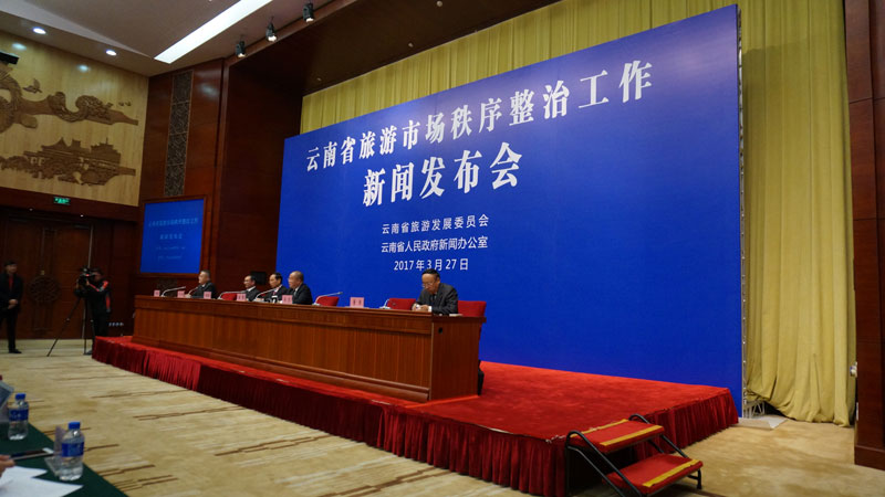会议刚刚结束,云南省旅游发展委员会和省政府新闻办公室就在这里召开新闻发布会,主要是通过新闻媒体向社会各界、广大游客、旅游行业通报整治措施的主要内容。整治措施一共七个方面22条: