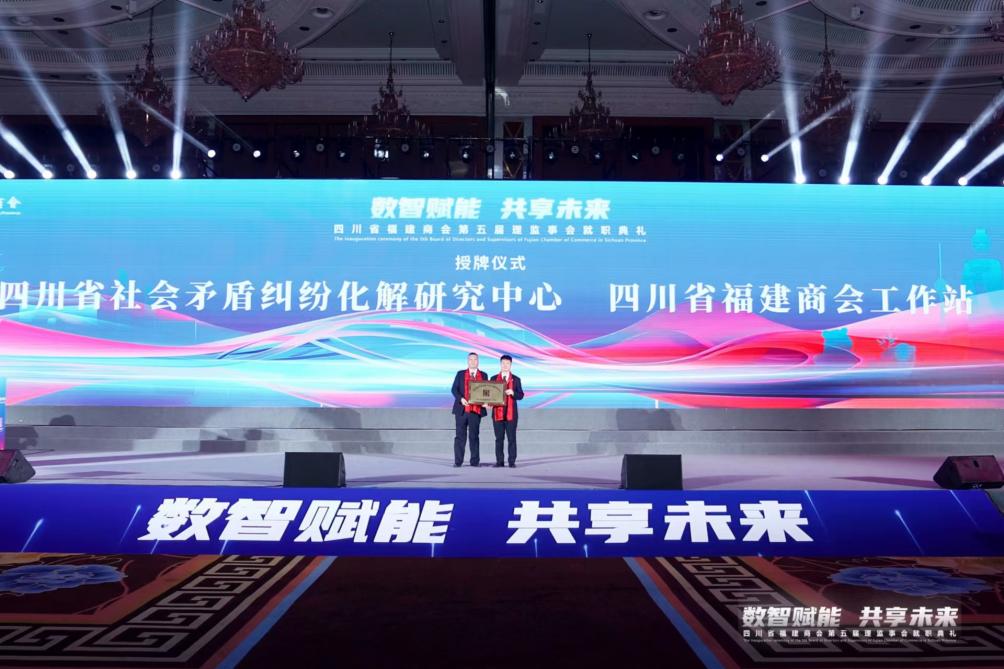 近日,四川省福建商会第五届理监事会就职典礼在成都举行,新一届理监事会成员集体亮相,新的征程就此扬帆起航。典礼上,四川省福建商会为闽商调解中心、四川省社会矛盾纠纷化解研究中心四川省福建商会工作站授牌,这意味着四川省福建商会法治保障得到进一步夯实,商会以法治思维引领企业发展之路至此踏上了新征程。