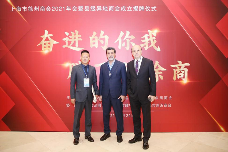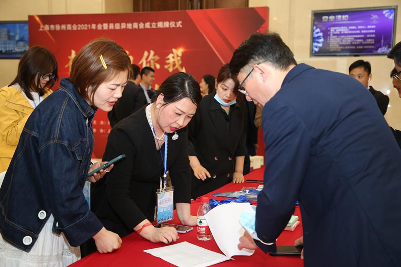 会上,原上海市委常委、上海警备区政委戴长友,上海市人民对外友好协会会长沙海林,江苏省政府驻沪办主任王建康,徐州市委常委、统战部长毕于瑞,徐州市政府副市长张克,上海市总工会副主席朱雪芹,徐州市工商联党组书记邱颖等领导为上海市沛县商会、上海市睢宁商会、上海市新沂商会成立揭牌。这是上海推出长三角地区县级异地商会试点登记工作开展以来,徐州首次获准在上海注册成立的县级异地商会。