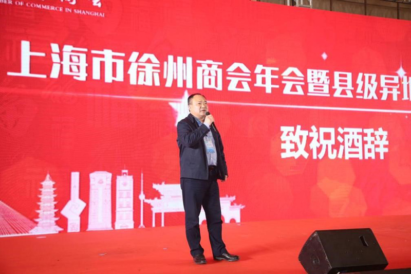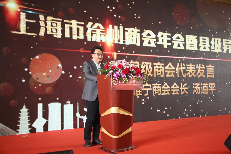 上海市睢宁商会会长汤道平代表三县商会做了表态发言。