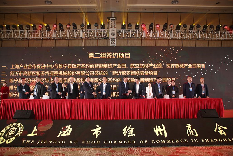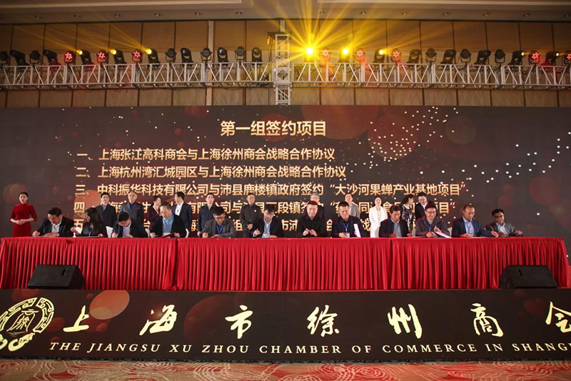 作为商会组织积极发挥作用,促进沪徐两地经济交流合作的成果展现,会上进行了上海市徐州商会与上海张江高科园区商会战略合作协议、沛县“药食同源食品加工项目”、“新沂粮农智能装备项目”、睢宁“应急装备制造产业园项目”等十二个项目现场签约。