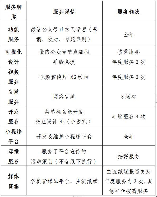 注意事项:公众号代运营及小程序平台建设所需各项支出,经招标后,原则上皆由中标方负责。若有特殊情况,双方可进行具体协商。