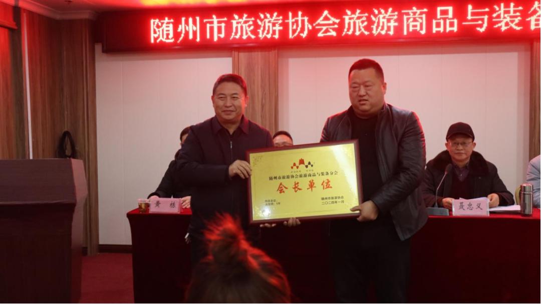 为随州市旅游协会旅游商品与装备分会会长单位授牌