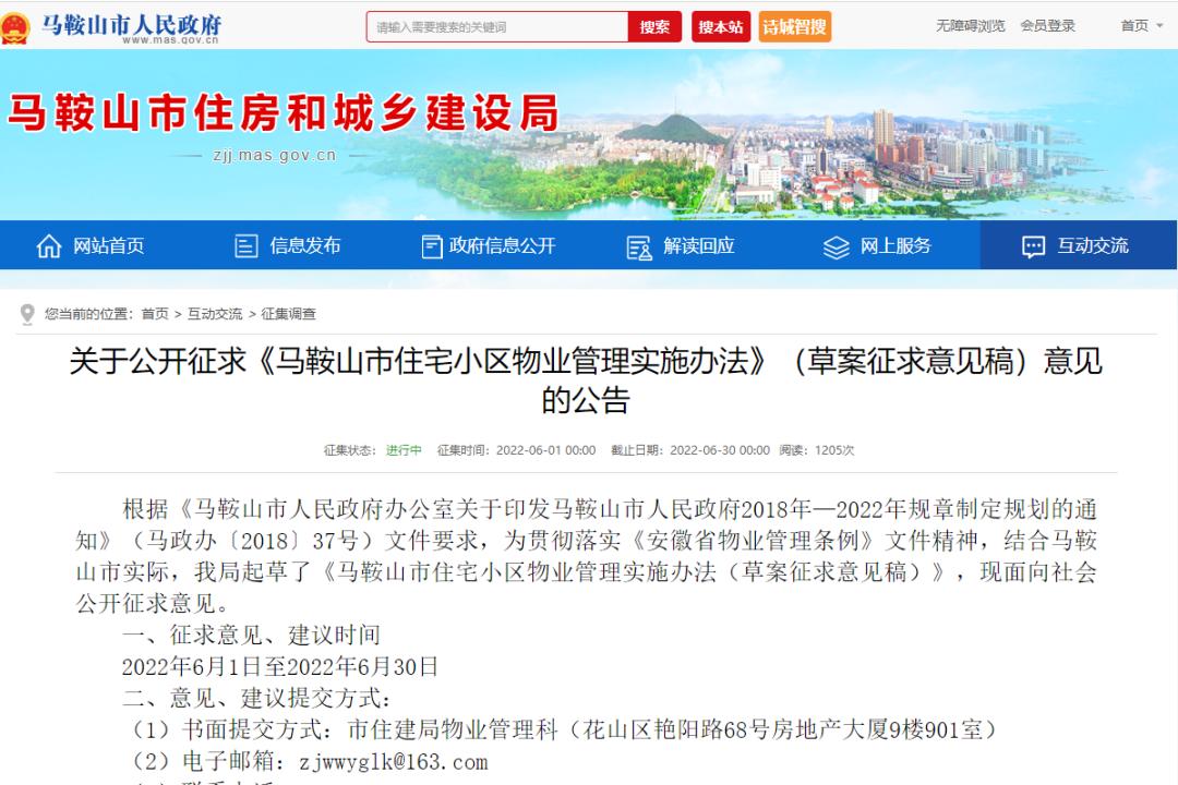 近日,马鞍山市住房和城乡建设局发布“关于《马鞍山市住宅小区物业管理实施办法(草案征求意见稿)》征求意见的公告”(以下简称《实施办法》),向社会公开征求意见。