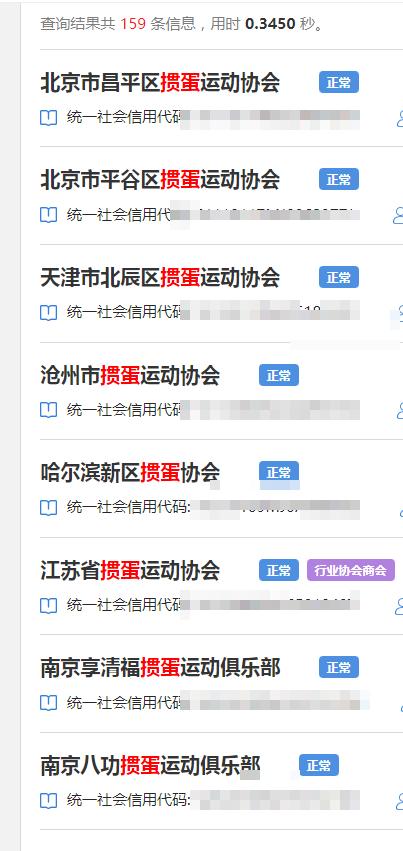 1月29日,记者在全国社会组织信用信息公示平台(试运行)查询发现,目前全国含有“掼蛋”文字的社团组织共有159家,其中40家成立于1年内,更多人参与到掼蛋经济当中。
