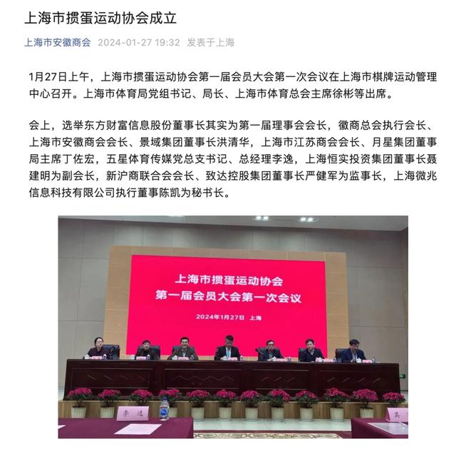 1月28日,#身家400亿富豪任上海掼蛋协会会长#话题冲上热搜,这条热搜来源于上海市安徽商会微信公众号的一条内容,1月27日,上海市掼蛋运动协会第一届会员大会第一次会议在上海市棋牌运动管理中心召开,东方财富董事长其实当选上海市掼蛋运动协会会长。东方财富三季报显示,其实在东方财富的的持股比例为19.31%,按东方财富目前2080亿元市值计算,其身家超400亿元。