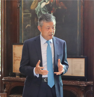 大家现在都很关注中美贸易战。中方立场是清晰和坚定的。中国不愿打贸易战,也不怕打贸易战。我们做好了应战的各种准备,但我们绝不打第一枪。中方为避免贸易战做了不懈努力,目前采取的反制措施是被迫的、克制的和正义的,目的不仅是为了维护自身利益,也是在维护以规则为基础的国际多边贸易体制,维护世界经济来之不易的复苏势头。中国开放的步伐不会因为贸易战而退缩,中国将继续“打开国门搞建设”,继续按计划深化改革、扩大开放。