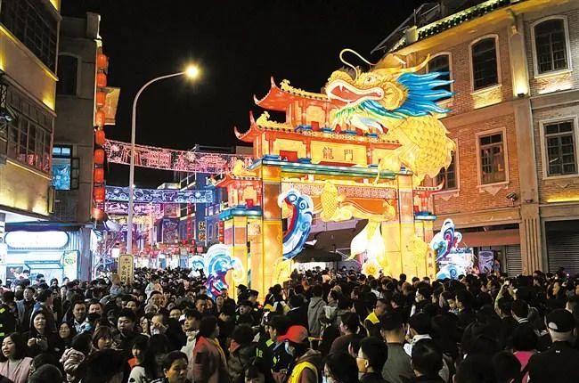 在小公园核心区的5条街道,满满的侨乡“国际范”扑面而来,主办方选取新加坡、马来西亚、泰国、柬埔寨、阿联酋5个潮汕华侨聚居国家的标志性建筑和特色物产,设计主题特色花灯,打造特色异国风情街。此外,活动还嵌入灯会集市、古风巡游、非遗体验、元宵灯谜、舞龙、英歌展演等沉浸互动环节,全面展示汕头浓厚的历史底蕴和独特的民俗文化。
