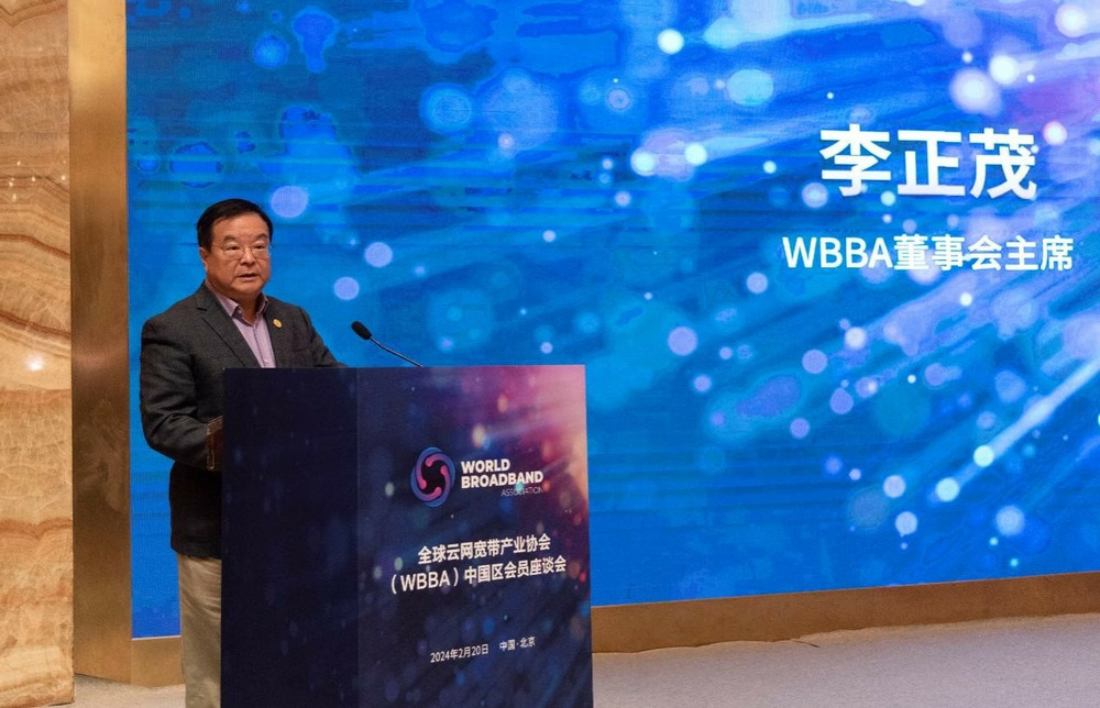 WBBA董事会主席李正茂致开幕辞,重点分享了WBBA在2024年的工作计划及发展目标。他表示,WBBA在各方的支持与共同努力下取得了丰硕的成果。2024年,WBBA将持续强化组织架构,建立专职秘书机构,为各位会员提供更优质的服务;协会将进一步提升全球影响力,预计10月在巴黎BDC峰会颁发宽带行业卓越贡献奖,并发布2024 WBBA全球云网宽带产业报告。他号召各位会员继续积极参与协会的建设与发展,共同推动云网宽带产业繁荣发展。