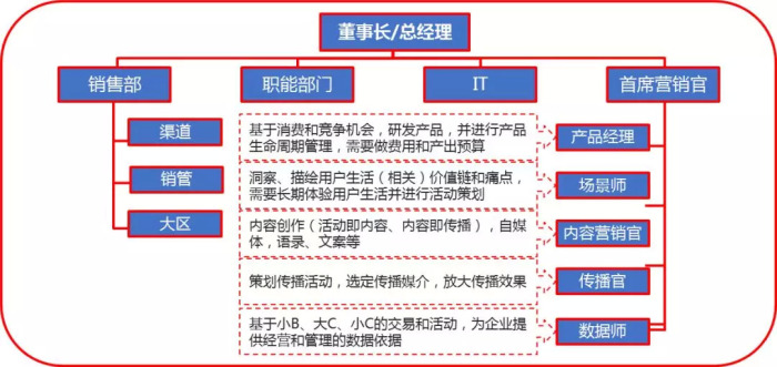 如何发育面向消费用户需求的首席营销官CMO职能,是新营销实施成败的关键,如下图: