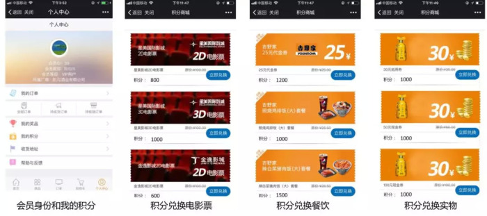 人人通让李渡和消费用户建立了深度一体化的关系,让市场资源配置更加有效。下图是积分商城和异业资源消费券。