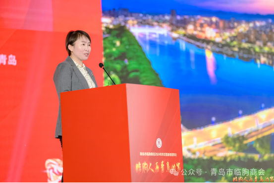 市南区委统战部副部长、工商联党组书记刘宇致辞,刘书记对青岛市临朐商会2023年一年来的成绩和党建工作表示肯定,并希望临朐商会以习近平新时代中国特色社会主义思想为指导,以建设中国特色一流商会为目标,持续推进商会规范化建设,商会会员队伍不断扩大,企业实力持续增强,服务功能全面提升,组织建设开创新局面,将临朐商会建设成为“临朐人在青岛最美的家”!