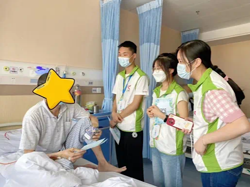 关娜妹:2020年开始加入广州医科大学附属第一医院的医务社工团队。日常工作分为两部分:第一,院内服务是工作的重点,包括为重大疾病患者、家属、医务人员提供多样化服务及支援。围绕提升患者院内生活质量、促进院内关系协调、营造医院友好环境这三个维度为医患、照顾者提供经济、心理、支持、社会等层面的服务,以协助患者链接对应资源,减轻经济负担,缓解患者的心理负担;为患者赋能,提升健康生活的能力等。第二,为院内外整合服务,与我在院内的工作相互促进,主要为整合志愿服务力量为其搭建互动与关爱平台,通过健康公益活动进社区、进家庭、进企业及品牌项目宣传等形式,不断维系医疗志愿服务队伍、加大医务社工服务感知宣传,扩大医务社工影响力。