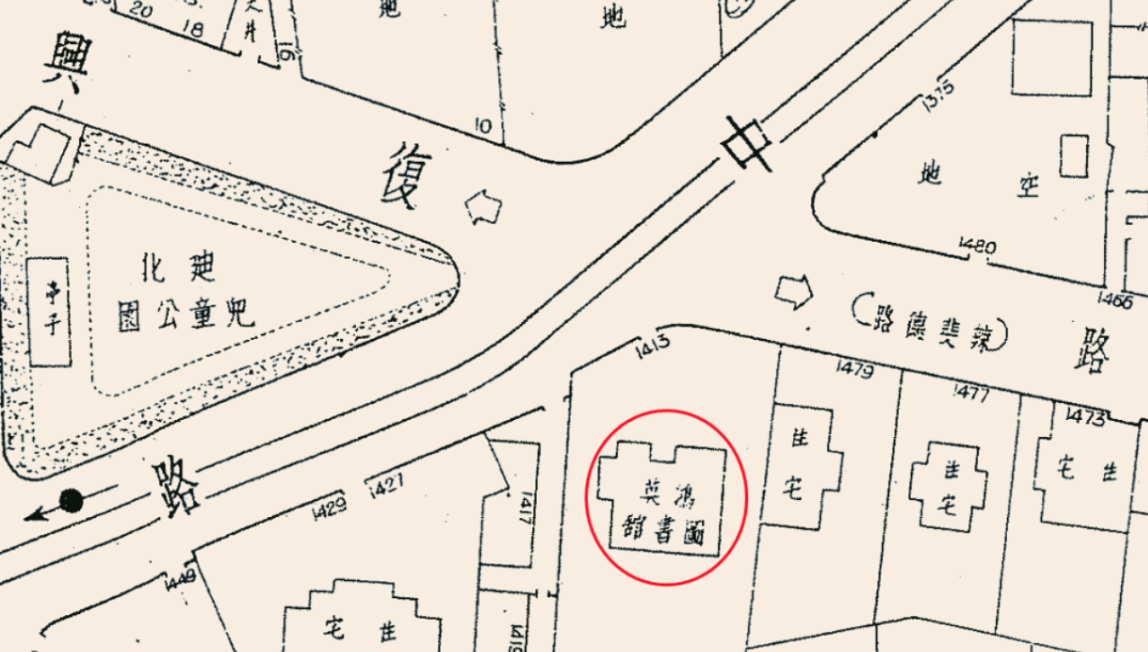 鸿英图书馆建成时位置图。本文图片均由作者提供