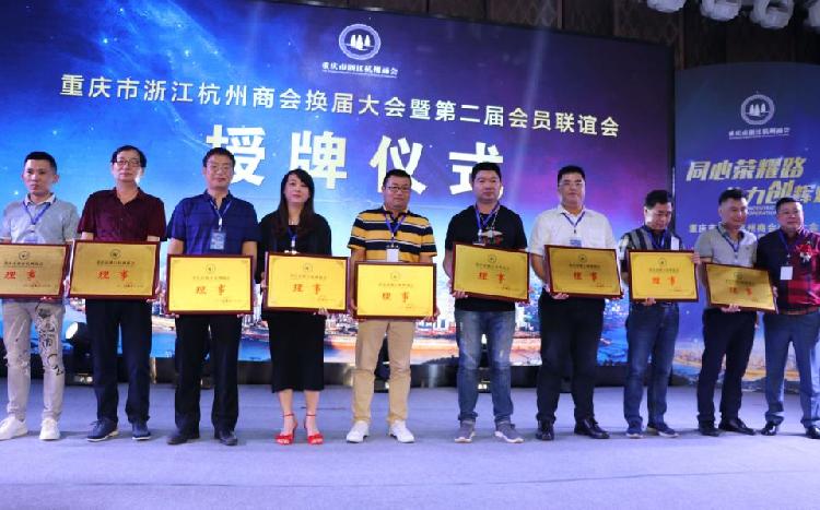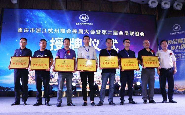 4月26日重庆市浙江杭州商会第二届会员大会暨第二届理事会第一次会议、重庆市浙江杭州商会党支部成立仪式在重庆两江假日酒店举行。