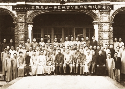 1948年9月30日,永嘉县钱商业同业公会成立三十一周年纪念,在市区纱帽河合影