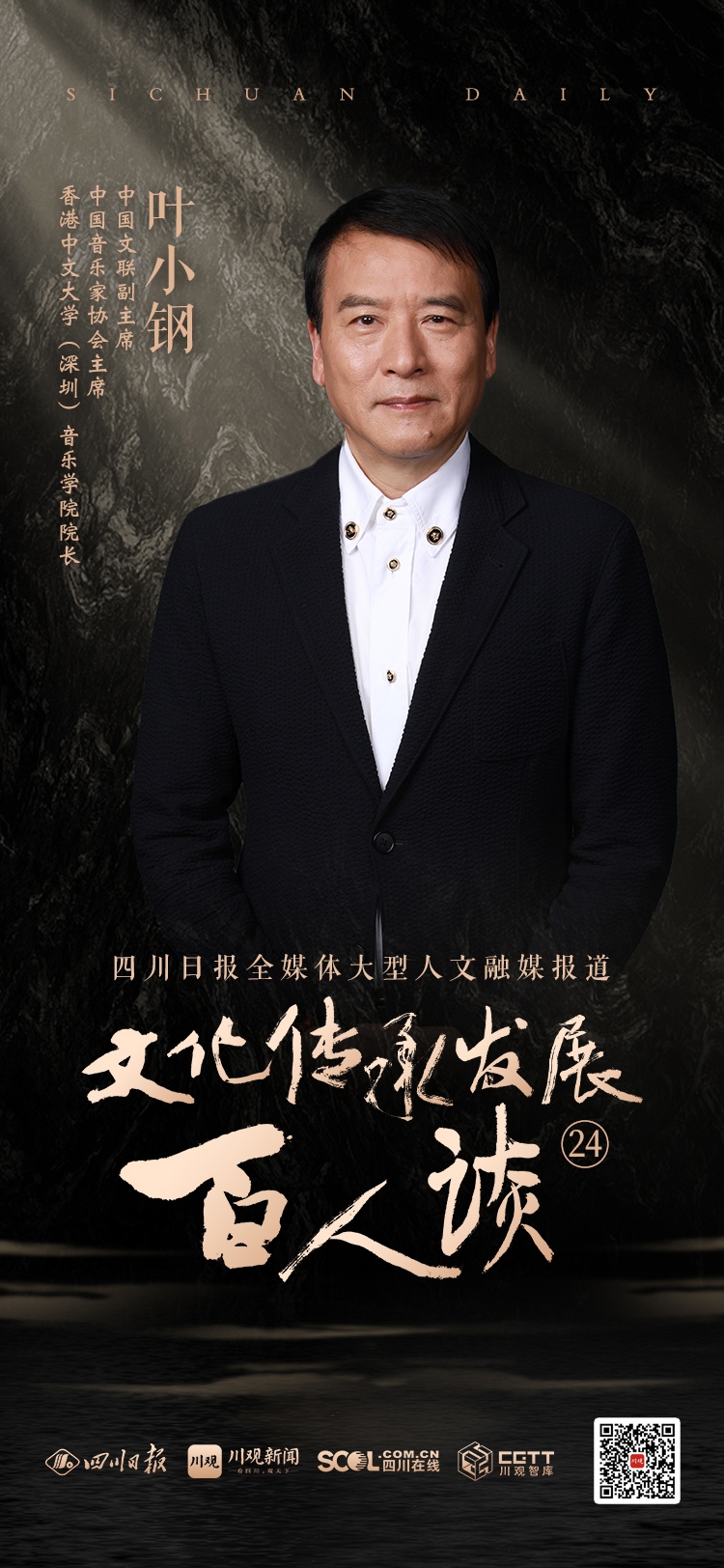 1月25日,叶小钢在香港中文大学(深圳)音乐学院接受四川日报全媒体“文化传承发展百人谈”大型人文融媒报道记者专访。他表示,艺术是讲述中国故事的重要载体,艺术工作者最重要的任务之一,就是将中国故事和中华文化与艺术合而为一,形成能够浸润心灵的艺术作品。