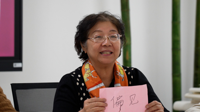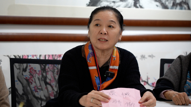 年轻时没有时间,等退了休,把孩子拉扯大了,有时间了,却没有体力和精力了,这大概是所有女性普遍的遗憾吧。而任海宁却有一个她长年埋在心里最大的遗憾,在这里,作为主席的王小晖忍不住替她说了出来:“我认为海宁抽到这个遗憾,特别切题,她的妈妈是我们协会的老主席、全国著名女画家单应桂,也是我的老师,德高望重,海宁却因为历史原因没能进入专业美术学院学习,但她一直坚持自己画画,画了这么多年,工笔和年画都非常好!”