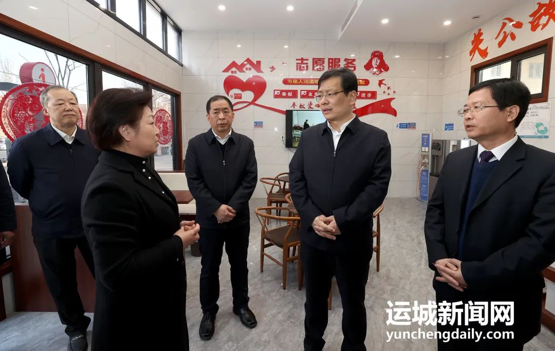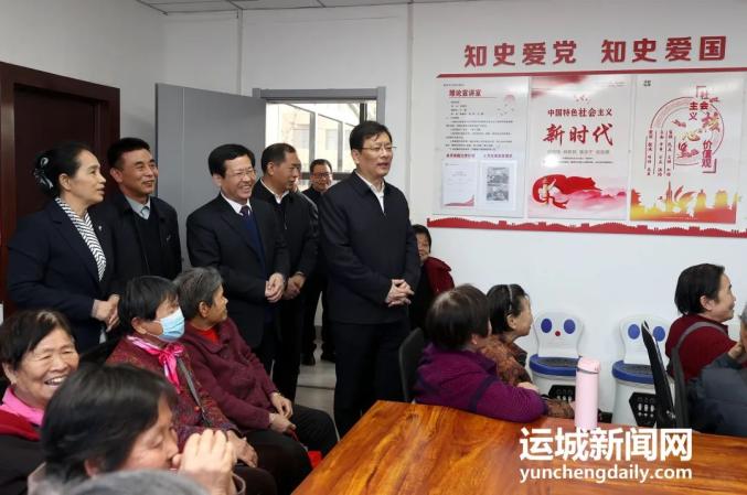 在运城禧康华荣老年公寓,丁小强详细了解机构运营、收费标准、入住人数、党组织建设、智慧养老平台建设等,实地察看老年人居住条件和环境。他嘱咐公寓负责人,要摸清老年人需求,探索智慧养老新模式,优化养老服务供给,让老年人得到更优质、贴心的服务。在新桥社区居家养老服务中心,丁小强认真察看医务室、娱乐室、餐厅等功能室,与老人们亲切交流,祝福他们健康长寿。他强调,要积极发展社区嵌入式养老服务机构、老年活动中心、老年食堂等,强化要素保障,做好监管工作,让老年人在家门口就能够享受到便捷的养老服务。
