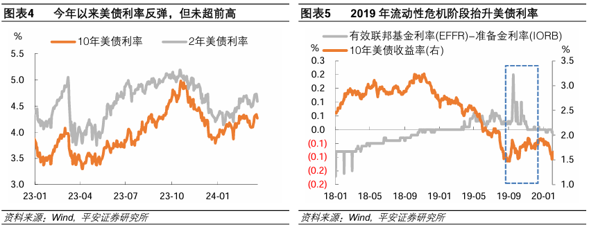 美债:预计10年美债利率在较长时间里保持在4%以上,下破4%可能需要首次降息真正兑现(或十分临近时)。目前市场和政策对通胀前景的判断或存在分歧,属于数据“过热”但美联储“冷静”的状态,多空因素交织,可能支撑10年美债利率保持在4%~4.3%区间震荡。此外,后续有关放缓缩表指引值得关注。预计放缓缩表计划更加明确,将部分缓解市场流动性担忧(或可排除2019年流动性压力阶段抬升美债利率的情形),令风险溢价缩窄,可能增加美债利率回落的动力。
