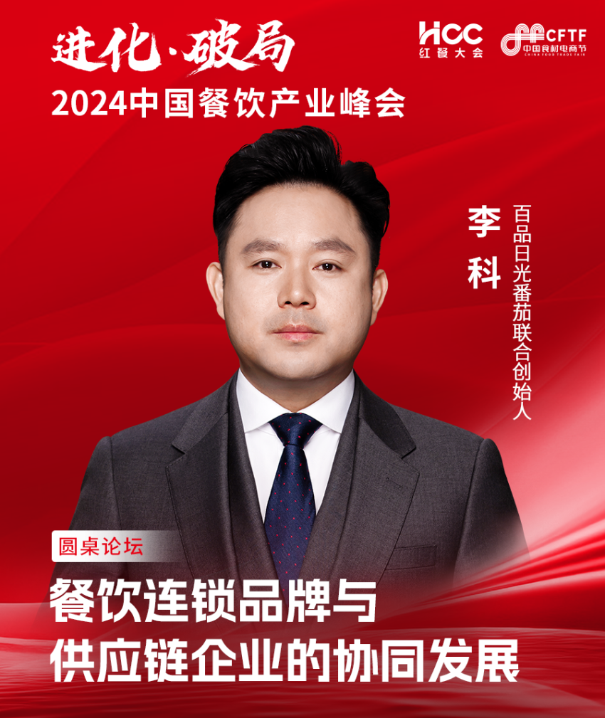 李科,成都百品味源餐饮有限责任公司联合创始人,中国烹饪协会火锅委副主席。创立中国首代番茄调味底料品牌“百品日光番茄”,服务全国30000+门店,已成为中国番茄底料领导品牌。