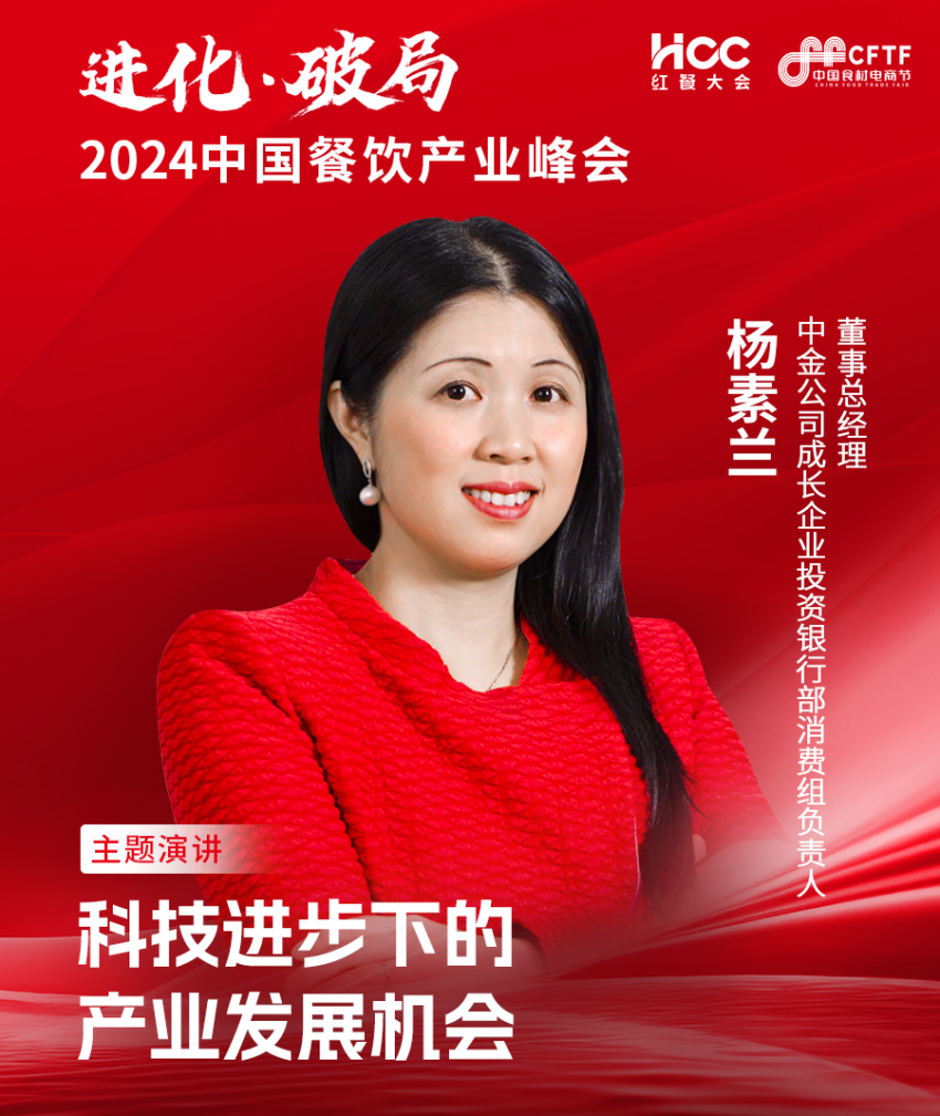 杨素兰,中金公司成长企业投资银行部消费组负责人、董事总经理,拥有20年资本市场融资和并购经验,精通消费行业及境内外资本市场,曾领导过多个具有影响力的香港IPO、美股IPO、A股IPO、并购及债务融资等项目。杨女士完成的项目交易总额超过800 亿美元。其服务多个大消费领域的龙头客户,包括农夫山泉、中国中免、安踏、百威亚太、珍酒李渡、绝味、锅圈、顺丰、极兔等。杨女士曾获得多项殊荣,包括《亚洲金融》2023 年度最佳投资银行家奖(香港特别行政区)。