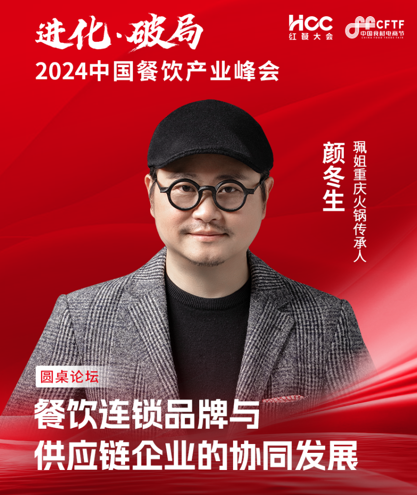 颜冬生,?姐重庆火锅传承人&重庆民贤餐饮文化有限公司董事长,任中国烹饪协会火锅委员会副主席、中国饭店协会火锅专委会副会长、重庆市餐饮商会常务副会长、重庆市火锅协会副会长等,荣获2018十大重庆经济年度创新人物、2020年度渝商,旗下?姐品牌荣获“重庆火锅直营门店规模全国第一”“重庆火锅天团第一名”“鱼子酱般红油锅底首创者”等多个荣誉。