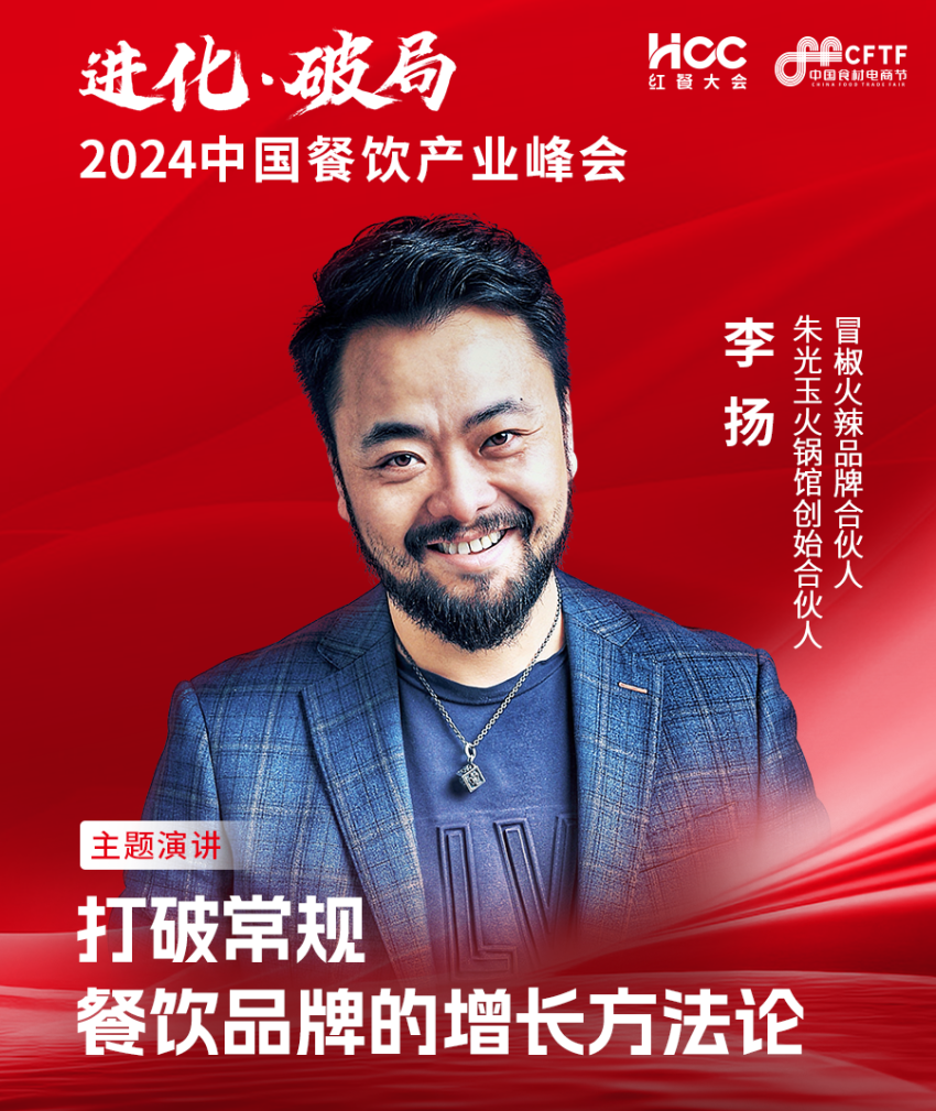 李扬 Alex,「朱光玉火锅馆、城都吃客串串大排档、银河餐饮」创始合伙人,「冒椒火辣、后火锅、大芊金火锅串串」品牌合伙人。拥有敏锐的行业洞察力和精准的决断力、丰富的行业经验,关注行业动态、极强的前瞻意识,专注餐饮连锁化、布局餐饮供应链。