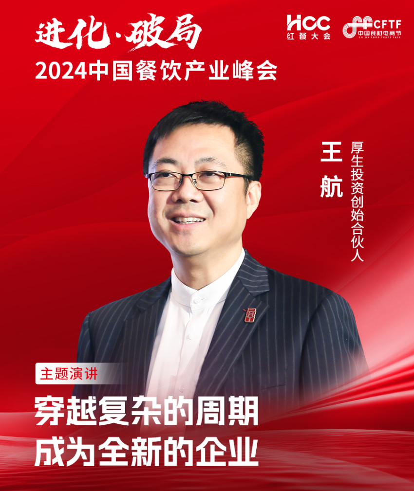 王航,厚生投资创始合伙人,北京大学经济学硕士。曾任中国青年企业家协会副会长,著有《阻击风暴--东亚金融危机中的狙击与阻击》《欧元震撼》 等书籍。厚生投资成立于2010年,是一家专注于食品供应链、食品消费以及食品科技的并购型投资机构,搭建了独特的产业生态圈。