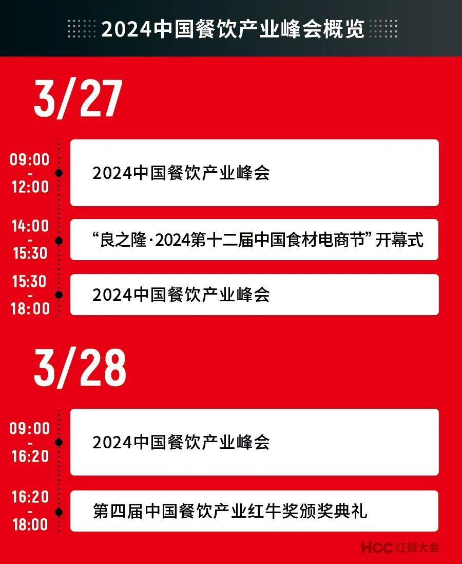 “2024中国餐饮产业峰会”为期2天,包含产业峰会、第四届中国餐饮产业红牛奖等环节,影响力辐射餐饮全产业链。