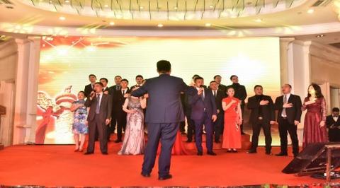 本次年会的点睛之笔是由成都兴文商会会员表演的大合唱《歌唱祖国》。当歌声响起之时,现场立刻爆发出了热烈的掌声,在场所有人都被《歌唱祖国》的歌声感染和点燃,并跟着共同歌唱。在激昂的歌声中,全体宾客感受到了成都兴文商会会高涨的热情,众人凝聚一心,砥砺前行。这一刻,全体会员对党和祖国的自豪感油然而生。