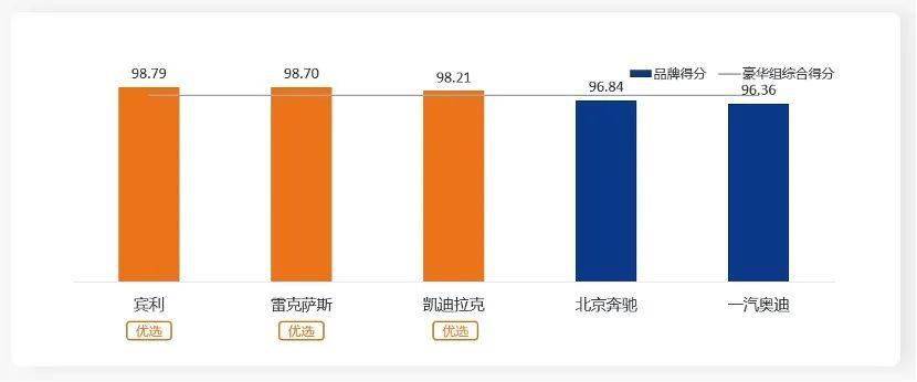 豪华组方面,宾利、雷克萨斯和凯迪拉克入选;合资组方面,东风本田、别克、北京现代、广汽本田和东风日产入选;自主组方面,比亚迪入选。