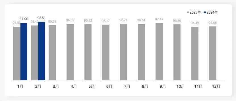 《报告》显示,2024年2月,汽车销售服务口碑指数为98.51分,环比上升0.85分,同比提升3.11分。本月数据覆盖了22个1~5线城市,46家经销商,20个品牌的731个有效样本量。