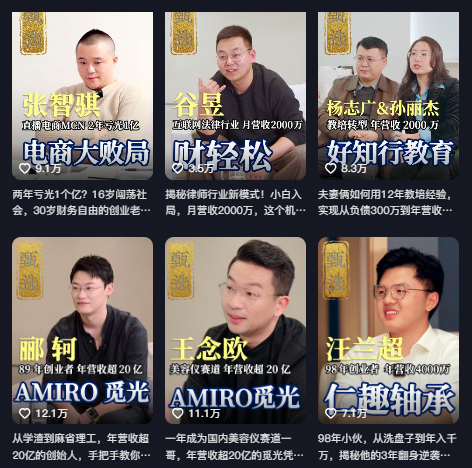 网红们在筹办私董会时,会发出长图海报和无数短视频“造势”,看过去,每个私董会都显得独一无二且物超所值:上百位创业者的资源随意使用,为你的项目赋能,共享流量。但把“赋能”“流量”这些词汇拿掉,会发现这些私董会所教授的最重要一课,就是教学员孵化类似出程前那样的IP,先做起一个抖音账号。