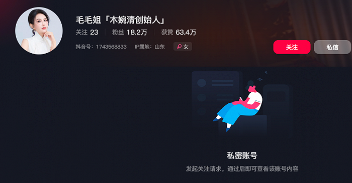 ▲ 毛毛姐的抖音账号,关注需要通过申请。图 / 抖音截图