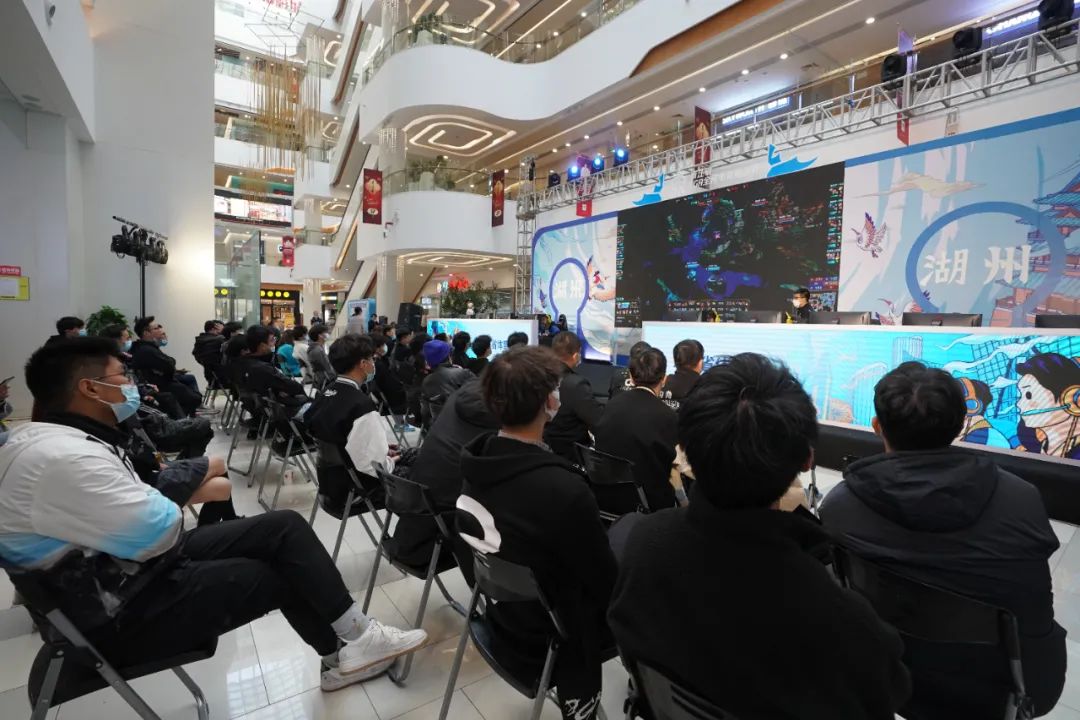 11月13日,湖州的大都汇城市生活广场,湖州区决赛在此地上演。隔着熙攘的人群就能听到场上的欢呼选手们战斗的激情。来到现场,有一位观众在广场门口激动的对《人民电竞》说:“在湖州,这样专业的赛事可不常见。”